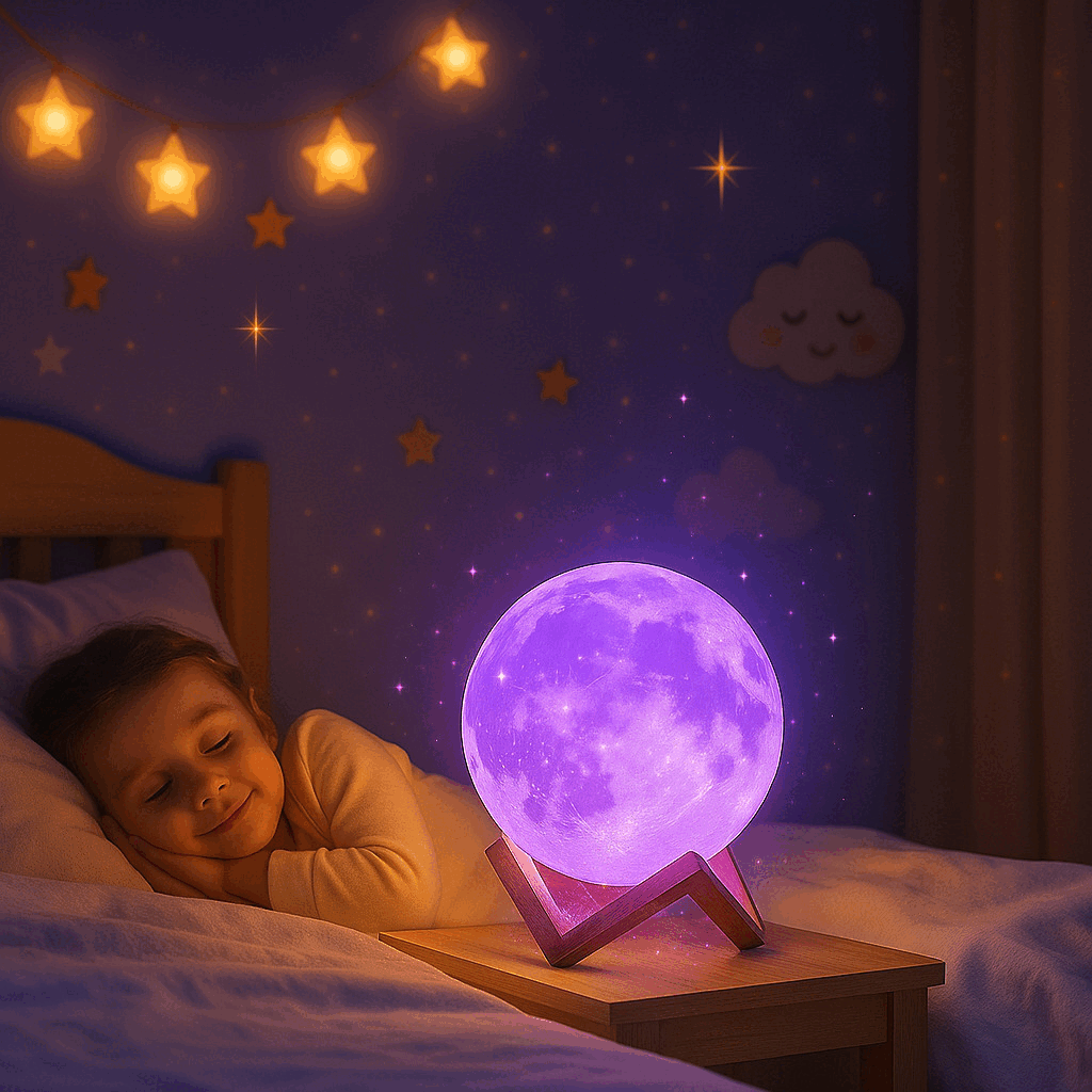 Convierte tus noches en un refugio de paz y bienestar. La Lámpara Lunar Balucci combina la belleza de la luz lunar con los beneficios de la cromoterapia, ayudando a relajar la mente, reducir el estrés y mejorar el descanso de grandes y pequeños.